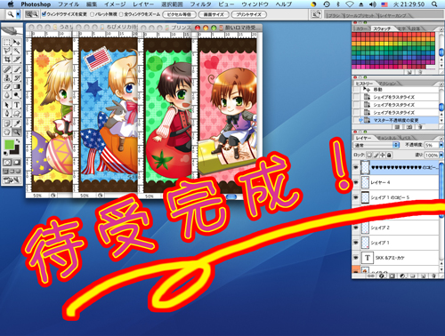 さて、主に私の方の事情で随分遅くなってしまいましたが、ようやく ちびちゃんたちの待受の仕上げが終了致しました! 明日には相方が本サイトの方にアップしてくれると信じておりますので(笑)、お好きなだけお持ち帰り下さいませ〜。